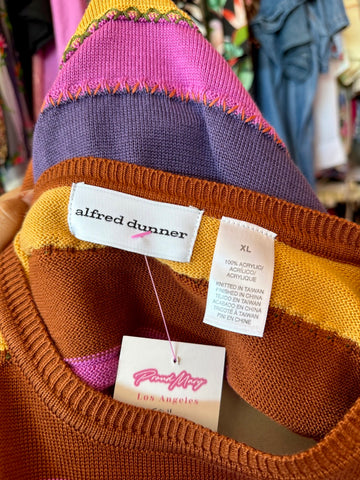This knit top has stripes of brown, fuchsia, orange, olive green, yellow, and purple with contrasting stitches. Tag: Brand: Alfred Dunner Size: XL...