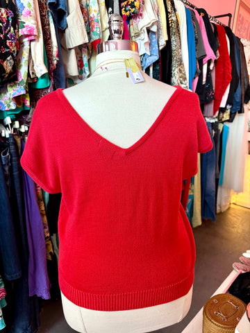 80s Red V-neck Sweater Vest - Size 2X-4X