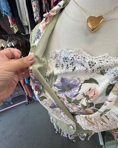 This floral skirt set is a versatile addition to your closet! Wear the set together or apart. The subtle lace bust liner that buttons to the blazer...