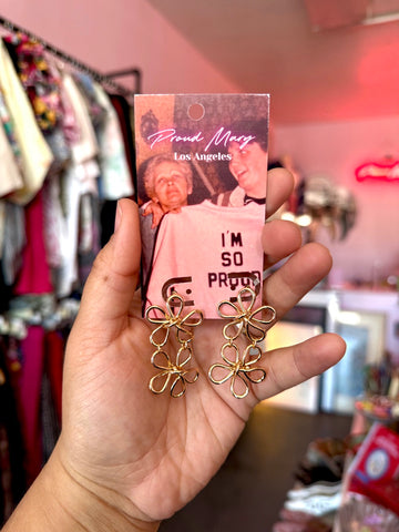 These cute double daisy outline earrings are perfect to romanticize getting dressed. Gold color with high shine finish. Details: Imported item Cos...