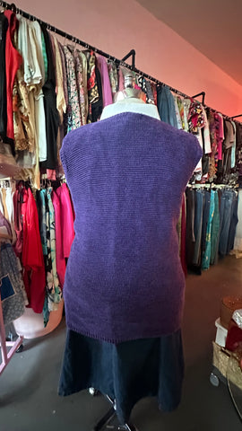 Royal purple knit vest with ribbed trim! It has lots of stretch and is a nice warm heavier weight knit in a cotton blend. Perfect over a collared t...
