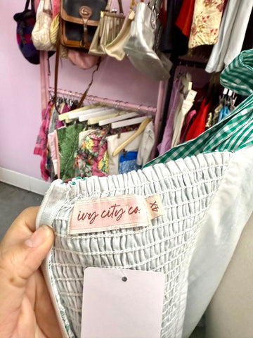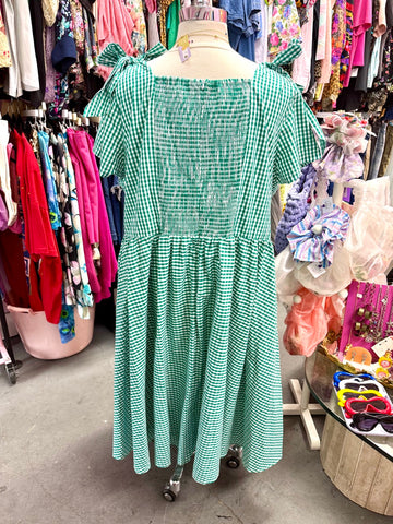 This gorgeous green gingham dress from Ivy City has statement bows on the shoulders and a longer midi length. It's perfect for holiday but the clas...