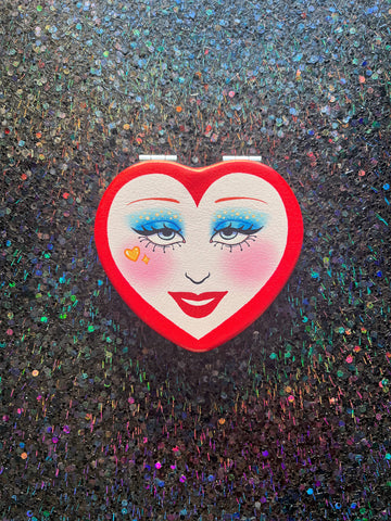 Wishing you the best, in the worst way. This red heart shaped pocket mirror features an iconic (and clowny) face of makeup, inspired by a certain ...
