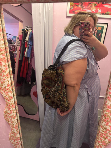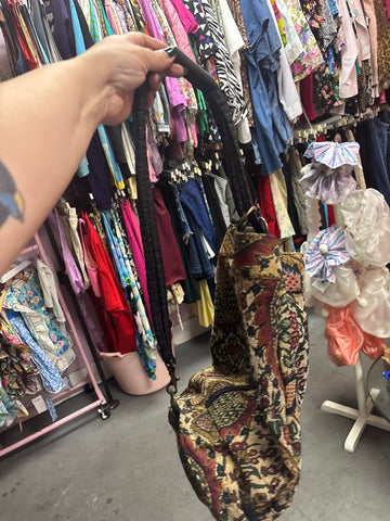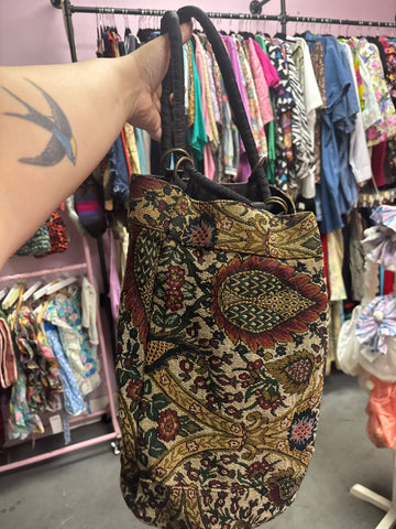 Vintage Kenneth Cole Tapestry backpack with zipper access point in back, metal hardware, and adjustable strap.  You can reverse this. The inside is...