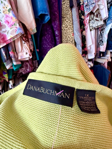 This knit tank has a v-neckline and comes in a soft keylime color.Tag: Brand: Dana Buchman Size: "1X" (runs large and has stretch) Material: 100% ...