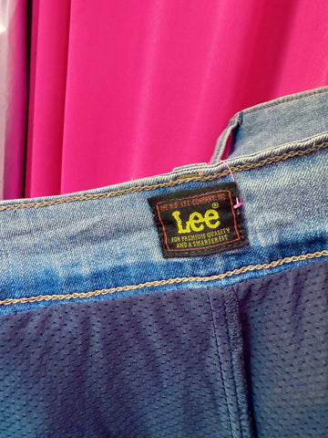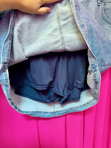 This denim mini skort by Lee has built in shorts made of a soft, athletic material like basketball shorts. It's a light wash denim with functional ...