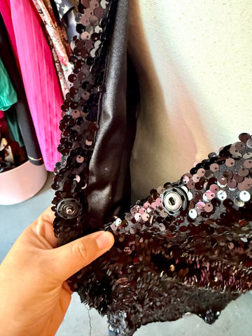 This longline, sequin jacket has two snaps at the waist if you'd like to wear it closed. It would look amazing worn open over your favorite dress o...