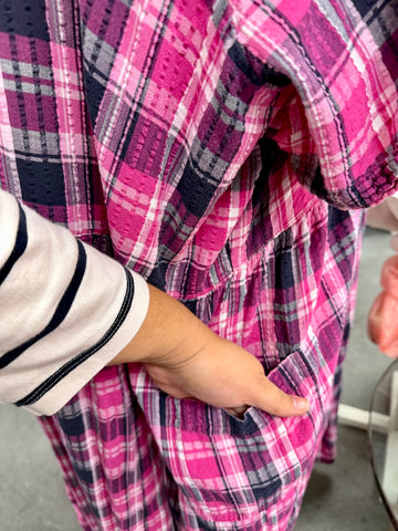 Pinky Pearl Plaid Snap Button Dress - Size 6X