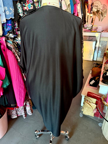 This batwing coverup has stripes of black and silver sequins down the shoulders. Open fit.Tag: Brand: N/A Size: N/A (see measurements below) Mater...
