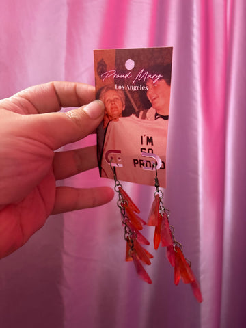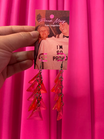 These vintage hook dangle earrings have pink and orange triangle pieces that create a stained glass feel.