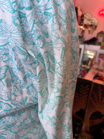 This 3/4 sleeve cardigan is 100% cotton with small buttons along the front so you can wear it closed or open.  This cardigan is a 2X but has stretc...